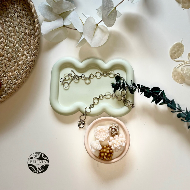 Dieses gewellte Tablett besticht durch seine organische Form und die feine handgefertigte Verarbeitung. Es eignet sich perfekt zur stilvollen Präsentation von Schmuck, Kerzen oder kleinen Accessoires. Ein minimalistisches Designstück, das sich harmonisch in jedes Interieur einfügt.