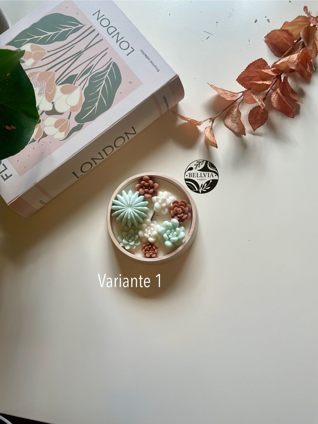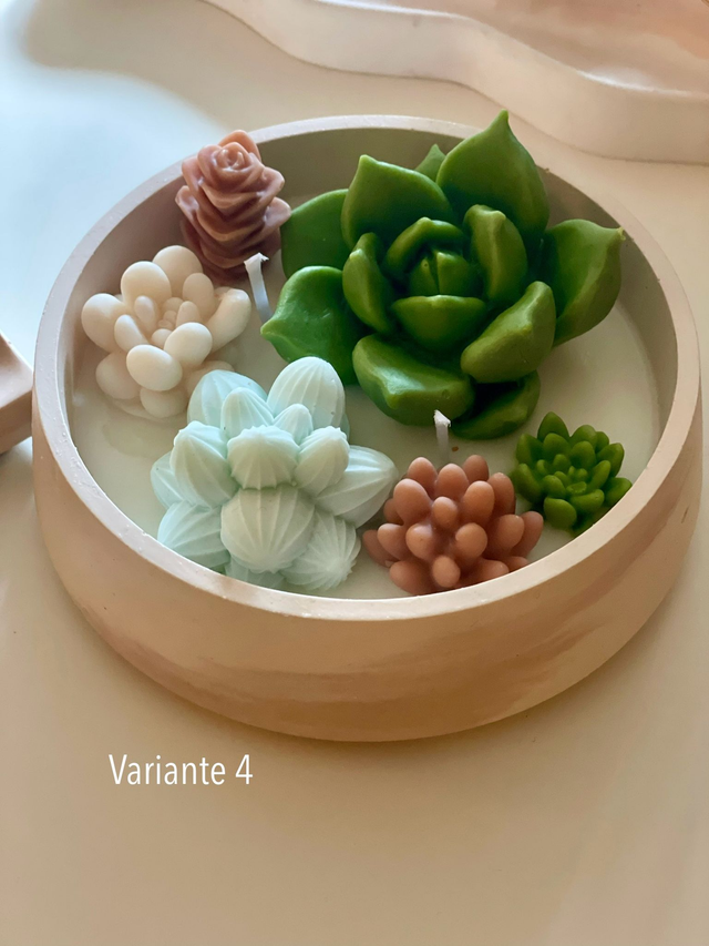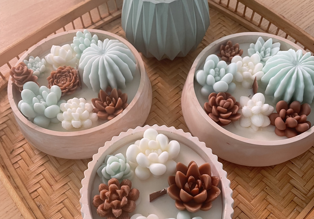 Kerze mit Sukkulenten-Dekor – rundes Design mit Detailverliebtheit