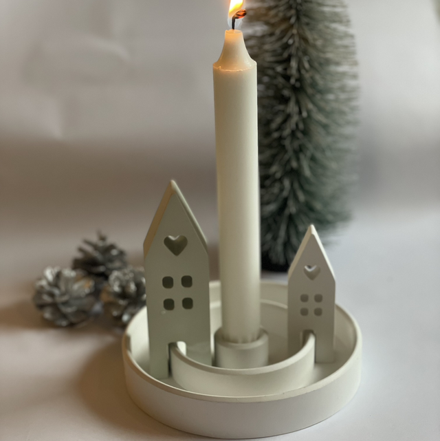 Dieser handgefertigte Stabkerzenhalter aus feinem Gips bringt ruhige Eleganz und winterliches Flair in jedes Zuhause. Ob in der zauberhaften Sternform oder als schlichte runde Variante – beide Designs vereinen moderne Minimalistik mit einem liebevollen Handmade-Touch.