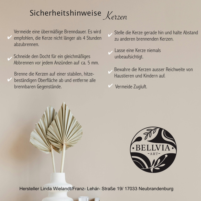 Bitte beachte: Jede Kerze wird in liebevoller Handarbeit gefertigt und ist somit ein echtes Unikat. Kleine Unregelmäßigkeiten in Form oder Oberfläche sind ganz normal und unterstreichen den handgemachten Charakter.