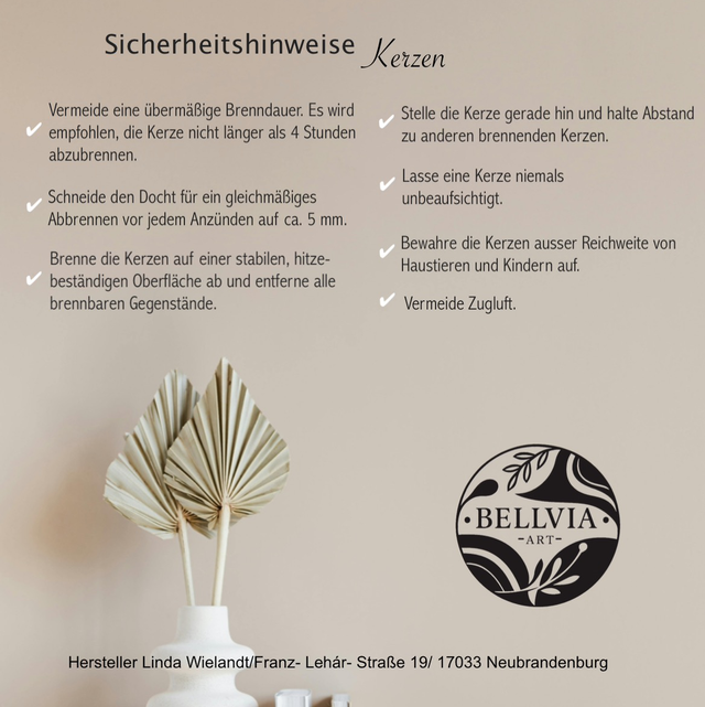 Bitte beachte: Jede Kerze wird in liebevoller Handarbeit gefertigt und ist somit ein echtes Unikat. Kleine Unregelmäßigkeiten in Form oder Oberfläche sind ganz normal und unterstreichen den handgemachten Charakter.
