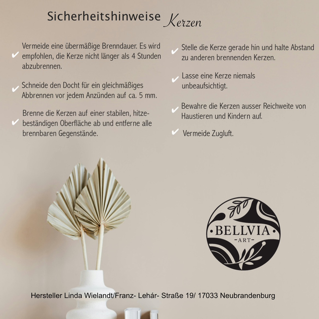 Bitte beachte: Jede Kerze wird in liebevoller Handarbeit gefertigt und ist somit ein echtes Unikat. Kleine Unregelmäßigkeiten in Form oder Oberfläche sind ganz normal und unterstreichen den handgemachten Charakter.